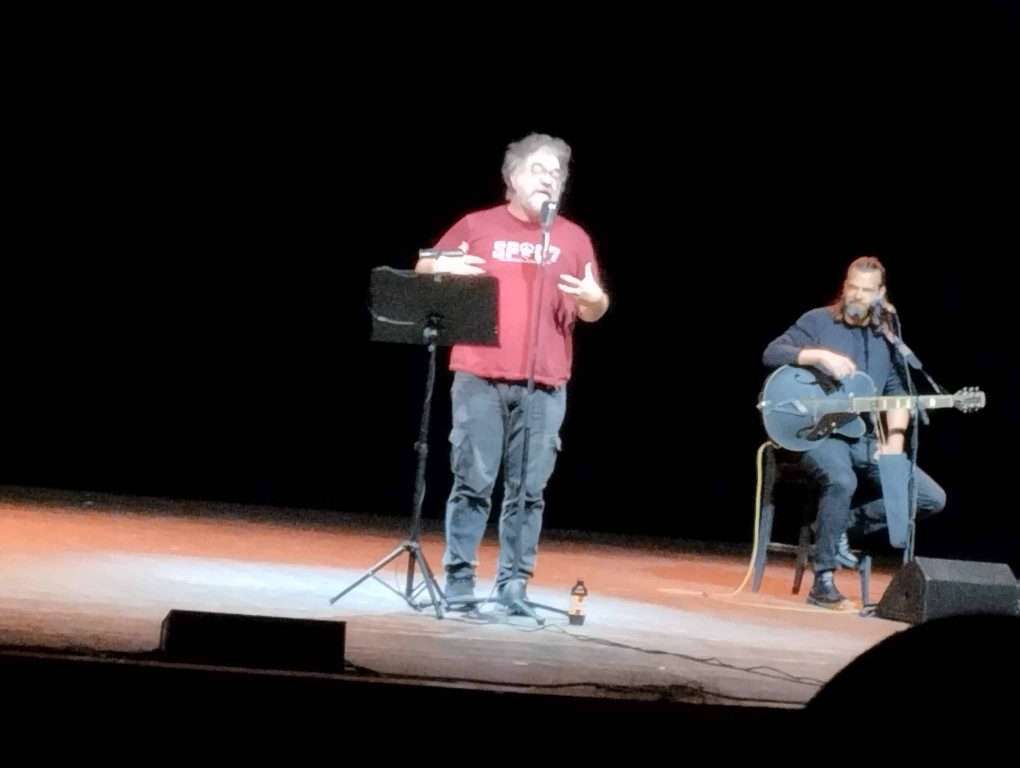 Pennacchi porta in sala uno spettacolo divertente e coinvolgente, accompagnato dai musicisti Giorgio Gobbo, già suo collaboratore e coautore, e Gianluca Segato.
