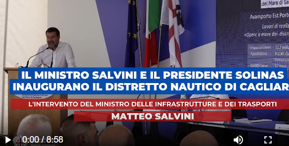 Lo ha detto il Ministro delle Infrastrutture e dei Trasporti Matteo Salvini, che stamane ha inaugurato il nuovo polo della cantieristica nautica a Cagliari, nel porto industriale, con il Presidente della Regione Christian Solinas, il presidente dell’Autorità di sistema portuale del Mare di Sardegna, Massimo Deiana, il sindaco di Cagliari, Paolo Truzzu.