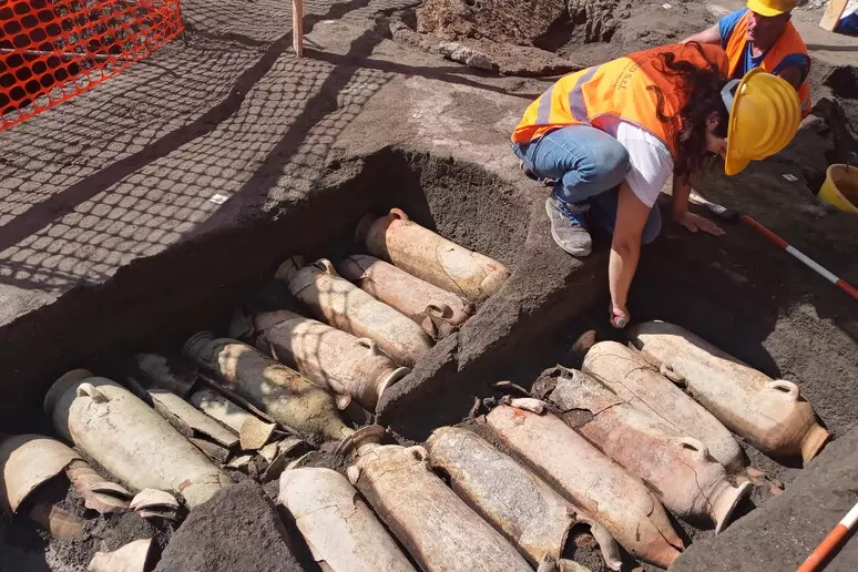 Il luogo in cui insistono i reperti è all’interno di una falda freatica dove le pompe hanno allontanato l’acqua. “Sono reperti archeologici relativi a tre fasi: una fase più recente riguarda l’alveo dove sono stati riversati dal I al IV secolo materiali archeologici vari. Quindi, la datazione di questi materiali ci consente di datare l’alveo che probabilmente risale all’89 d.C. Poi c’ è una fase più antica che riguarda i campi arati che sono sotto le pomici del 79 d.C.” ha detto il soprintendente archeologico per l’area metropolitana di Napoli, Mariano Nuzzo. “Oltre ai campi arati, c’è la necropoli con il dato interessante relativo alle deposizioni. Il fatto che fossero tombe a fossa e poi ricoperte da sette anfore ci danno indicazioni sulla presenza di popolazione Nord Africana o Osco Sannita, probabilmente”.