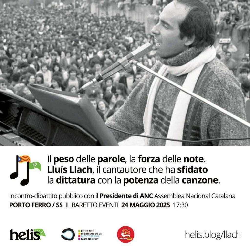 “Viaggio nel ruolo dell’arte e della musica nella società, nella Cultura e nella lotta politica” è il titolo dell’incontro dibattito organizzato per le ore 17.30 di sabato 24 maggio 2025 dalla crew del Baretto Eventi di Danilo Cappai sulla baia di Porto Ferro. Relatore d’eccezione sarà Lluís Llach, voce storica della Catalogna, cantautore simbolo e presidente ANC dell’Assemblea Nacional Catalana e protagonista di un momento dall’altissima valenza sociale, culturale e politica immaginato in collaborazione con la Federaciò d’Entitats de la Mediterranea Mare Nostrum e helis.