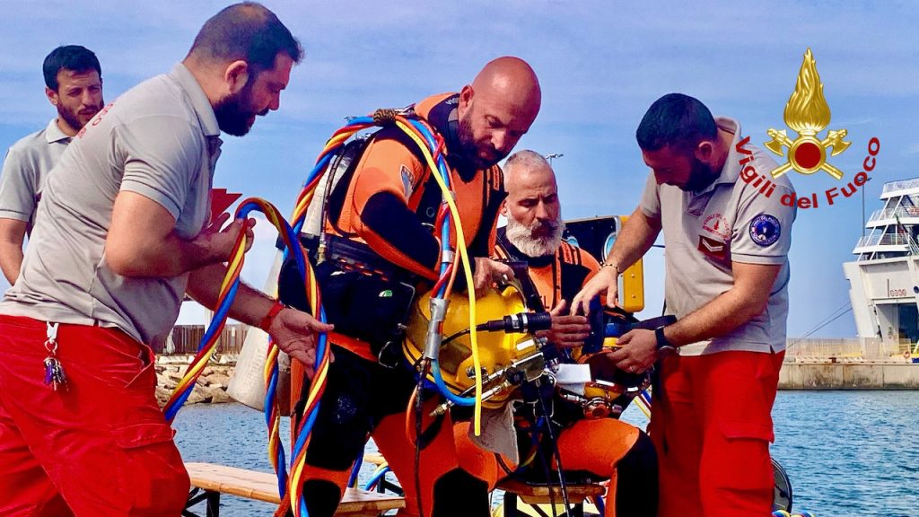 Un addestramento dei sommozzatori delle squadre del 115 effettuato con il metodo Siacs, il Sistema di Immersione Alimentato e Controllato dalla Superficie, ritenuto importante per interventi lunghi in fondo a mari e laghi. Questa mattina la preparazione si è svolta in prossimità della banchina di Ponente, luogo di attracco della nave Tirrenia, a due passi dalla sede del vigili del fuoco.