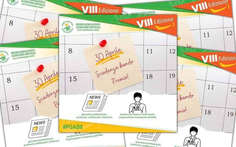 C’è tempo fino al 30 aprile 2024 per partecipare al premio giornalistico Alessandra Bisceglia per la comunicazione sociale, istituito per dare seguito all’esempio di coraggio, tenacia e profonda motivazione che Alessandra ha testimoniato nella vita, nello studio e nella professione giornalistica.