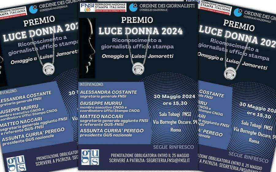È dedicato alla memoria della storica segretaria e tesoriera del Gus nazionale Luisa Jamoretti Parodi, punto di riferimento anche del Gruppo uffici stampa lombardo, la prima edizione del premio ‘Luce donna’ fortemente voluto dalla presidente del Gus nazionale Assunta Currà, promosso dalla Federazione nazionale della Stampa italiana e patrocinato anche dal Consiglio nazionale dell’ Ordine dei Giornalisti.
