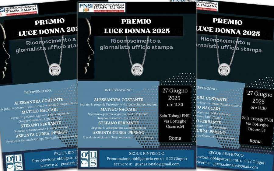 Si terrà venerdì 27 giugno 2025 alle ore 11:30, nella sala Walter Tobagi della Fnsi in via delle Botteghe Oscure 54 a Roma, la seconda edizione del premio “Luce donna”.