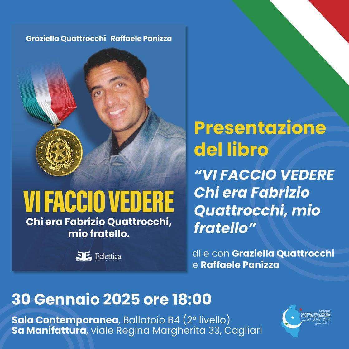 il Centro Italo Arabo e del Mediterraneo Sardegna ha il piacere di invitarti all’evento di presentazione del libro “Vi faccio vedere – Chi era Fabrizio Quattrocchi, mio fratello”.