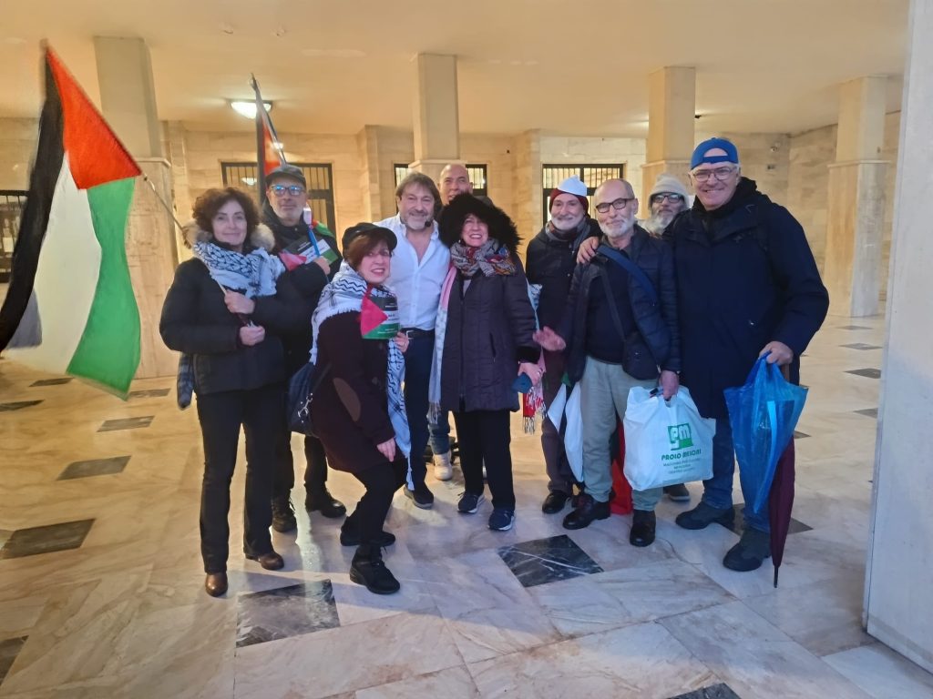 Un Presidio che chiamiamo Piazza della Indignazione che ha elevato la bandiera della Palestina a simbolo di tutte le popolazioni civili vittime della guerra e del diritto della forza che sta oscurando la forza del diritto.