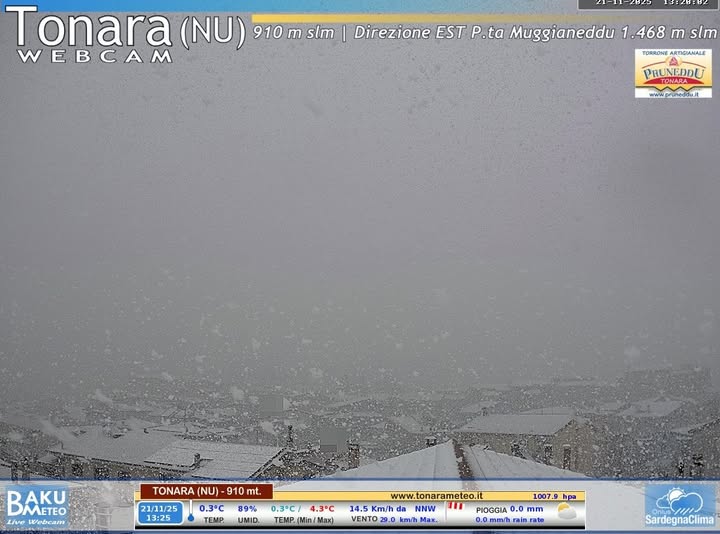 Un manto di neve, la prima di questa stagione, sta imbiancando parte della Sardegna oltre i 700 metri, con neve a Desulo, Ovodda, Tonara, Fonni e sul Monte Limbara, a 1050 metri sul livello del mare.