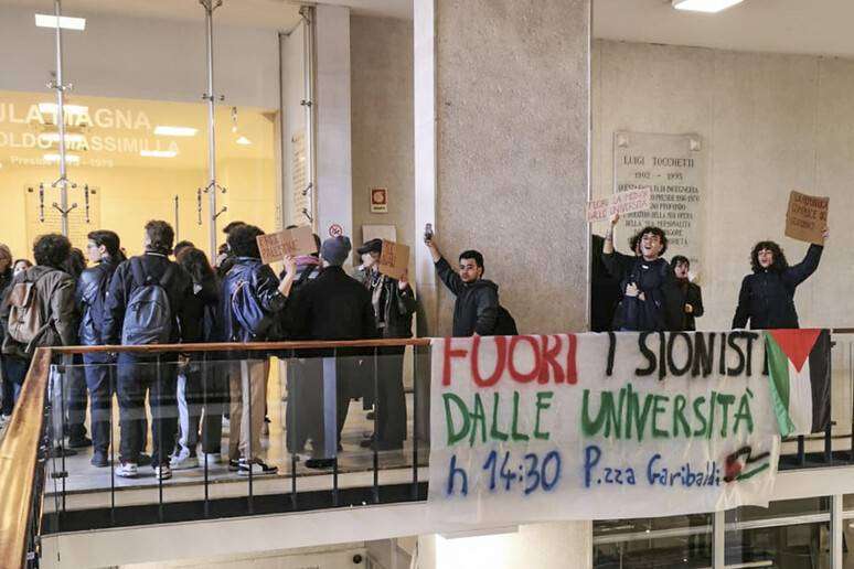“Volevamo dire al direttore Molinari – si legge in una nota degli studenti – che in Palestina sono 30.000 i morti ammazzati da Israele. Il direttore de La Repubblica e il rettore Lorito come possono parlare di Mediterraneo mentre si consuma nel cuore dello stesso, un genocidio? Noi chiediamo la rescissione di qualsiasi rapporto tra i nostri atenei ed Israele”.