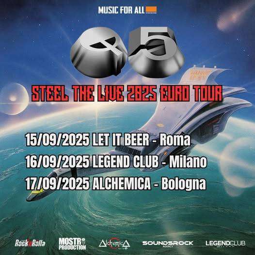 Per la prima volta in Italia, i leggendari Q5-Steel and Light, direttamente da Seattle, con il loro tour europeo toccheranno il suolo italiano con tre date esplosive che riporteranno sul palco la magia di una band che ha fatto la storia.
