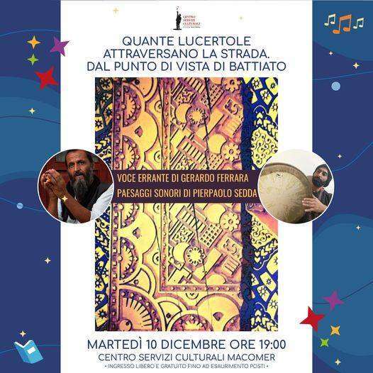 Una rilettura di alcuni testi del filosofo e cantautore catanese Franco Battiato, la cui partitura è rappresentata da temi, tanto ineluttabili quanto urgenti: la letteratura, la filosofia, il sacro, le storie, le genti, il viaggio stesso. Un mosaico di suoni e fonemi la cui (RI)composizione fornisce ad ognuno il tentativo di (rac)cogliere il frammento che più gli appartiene.