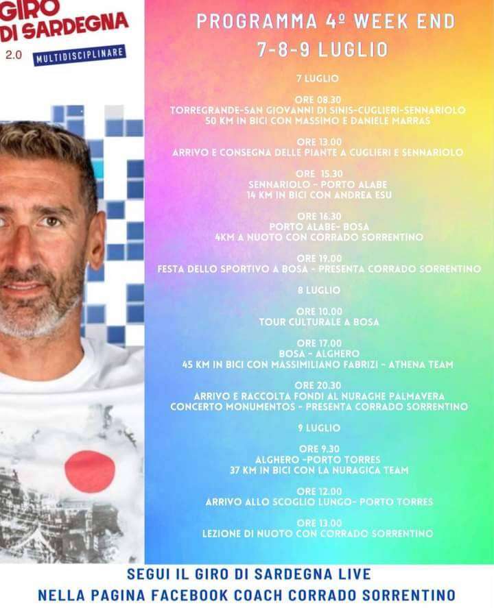 Nel week end, a partire da oggi venerdì 7 e fino a domenica 9 luglio, quarta tappa del “Giro di Sardegna 2.0 Multidisciplinare” di Corrado Sorrentino dedicato ad Amelia.