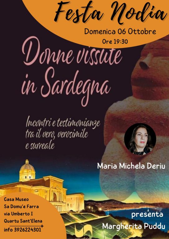 Domenica 6 ottobre il prossimo appuntamento, anch’esso incentrato sulla valorizzazione del patrimonio folkloristico locale, quartese o comunque sardo. Nell’occasione, alle 19.30, spazio all’iniziativa dal titolo ‘Donne vissute in Sardegna’, per parlare di incontri e testimonianze tra il vero, il verosimile e il surreale con la scrittrice Maria Michela Deriu.