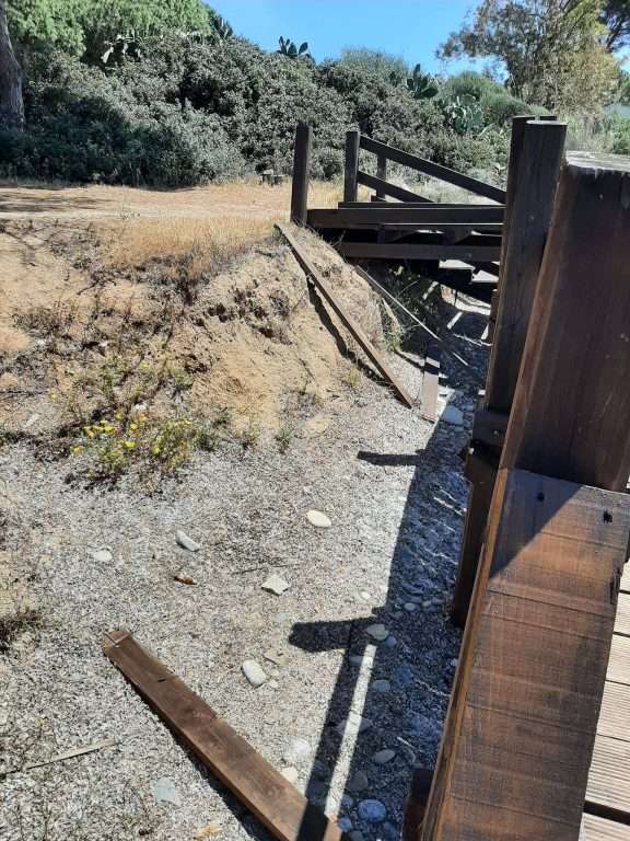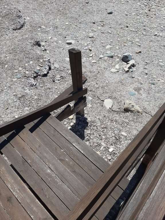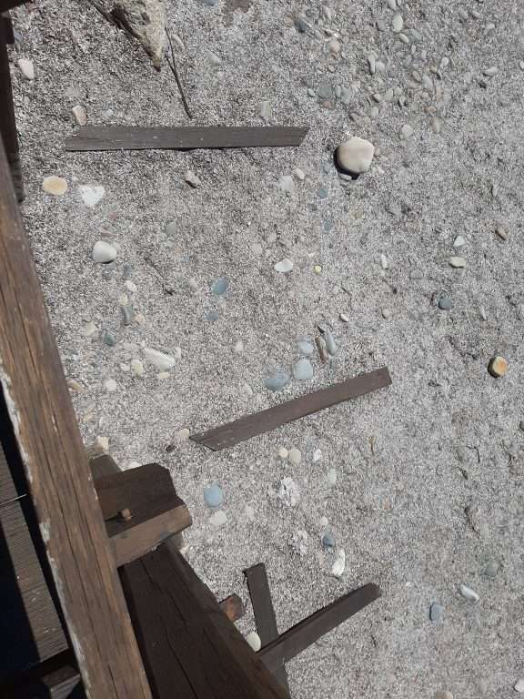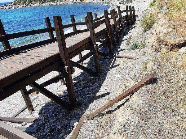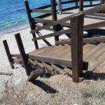 Non avendo nulla di meglio da fare per impiegare il loro tempo, i teppisti si sono divertiti, hanno divelto alcuni scalini, strappato diverse assi dalla balaustra e rimosso i sostegni sottostanti la struttura per poi abbandonare il tutto lanciato sulla sabbia.