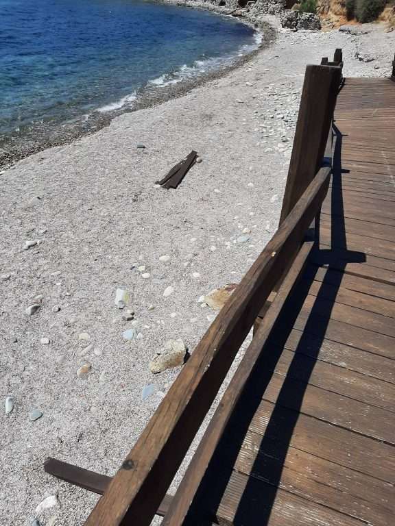 Come si può chiaramente vedere dalle foto, i “cervelli” hanno reso inaccessibili rampa e gradini che consentivano l’agevole discesa all’arenile.