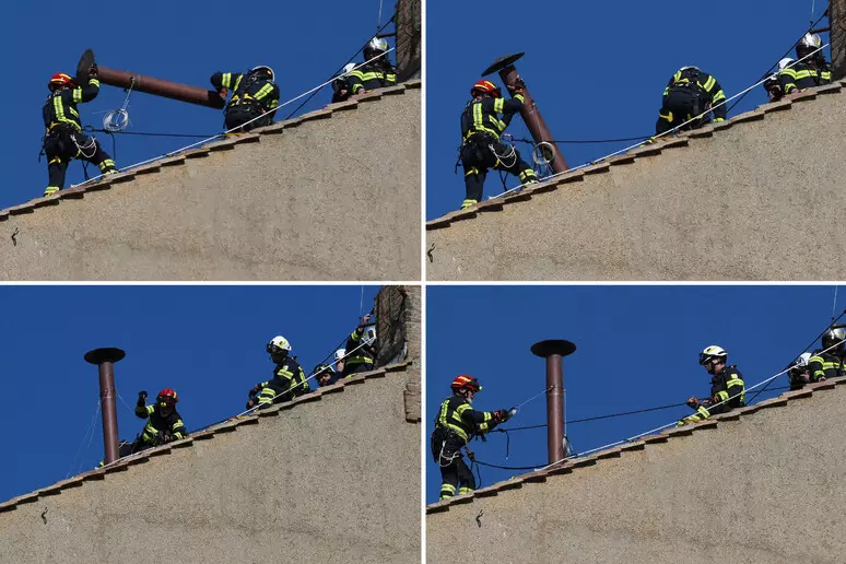 I vigili del fuoco vaticani sono al lavoro da questa mattina per sistemare il comignolo sulla Sistina, dove si riuniranno i cardinali in conclave a partire dal 7 maggio. Sarà quello il filo di comunicazione tra il conclave e il resto del mondo per comunicare l’avvento del successore di Bergoglio.