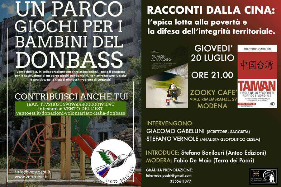 Prima e dopo la conferenza sarà possibile partecipare alla raccolta fondi per il progetto dell’associazione Vento dell’Est “Un parco giochi per i bambini del Donbass”.