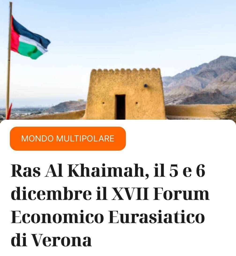Il Forum Economico Eurasiatico raggiunge una nuova regione, quella mediorientale, dopo 14 anni a Verona e due in Asia Centrale: la XVII edizione si terrà in presenza e in streaming (forumverona.com) giovedì 5 e venerdì 6 dicembre 2024 a Ras Al Khaimah, negli Emirati Arabi Uniti, presso l’Al Hamra Convention Center. Il Forum è organizzato dall’Associazione Conoscere Eurasia in partnership con la Camera di Commercio e Industria degli Emirati Arabi Uniti.