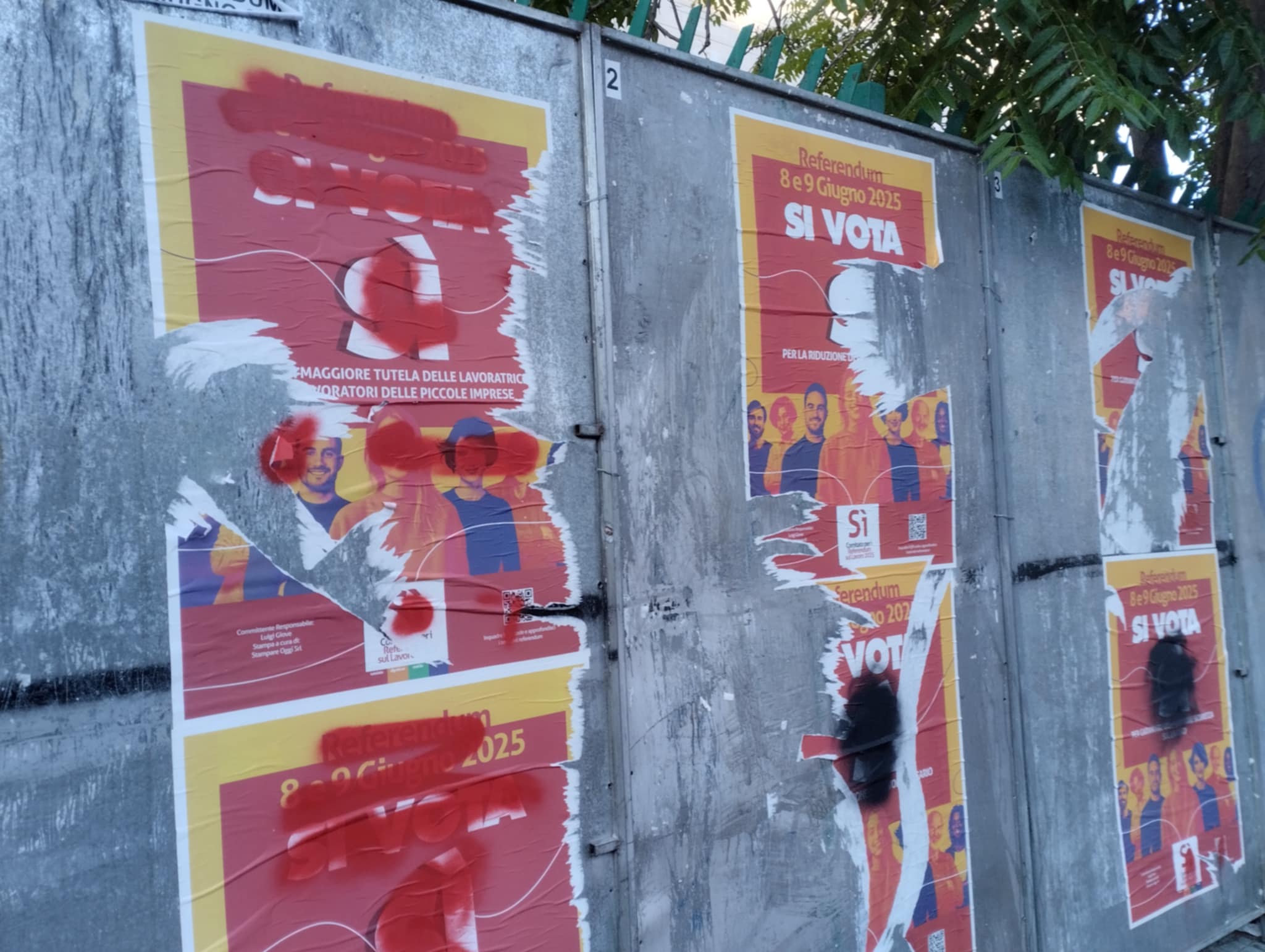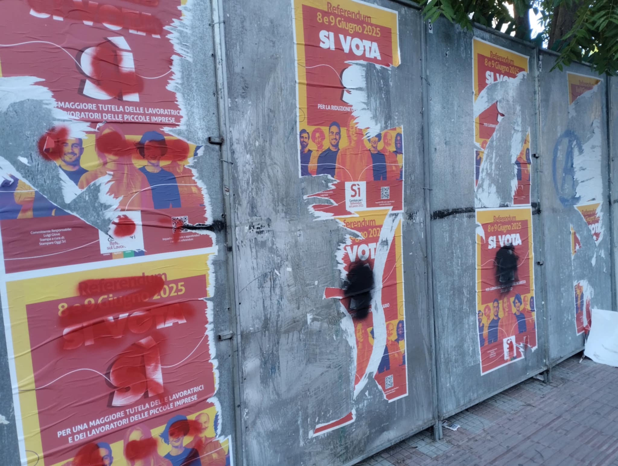 I manifesti del Comitato Referendario 5 SI, presenti negli spazi elettorali nel capoluogo sono stati strappati e imbrattati da ignoti.