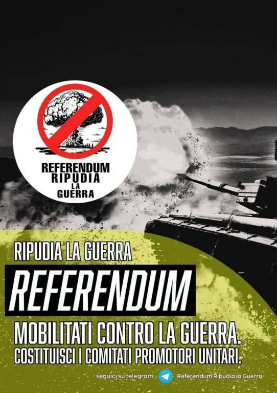 “Sulla politica estera e sulla Guerra, così come su altri temi fondamentali, è proprio vero che la destra e la sinistra sono due facce della stessa medaglia. Un grande risultato è stato comunque quello di informare, rendere consapevoli centinaia di migliaia di cittadini, che potranno in seguito divenire parte attiva della lotta contro questo sistema iniquo e guerrafondaio” – prosegue Pennetta- “Dunque, la presumibile cifra si aggira ora attorno ai 295 mila firmatari. Pertanto, se in queste ultime settimane non ci sarà uno straordinario incremento del numero delle sottoscrizioni, pur ottenendo un risultato straordinario considerata la totale mancanza di qualunque finanziamento, vorrà dire che la consultazione popolare non potrà avere luogo. Sono giorni e settimane decisive, la campagna Referendaria è nelle vostre mani. Continueremo la lotta alla Guerra a testa alta”.