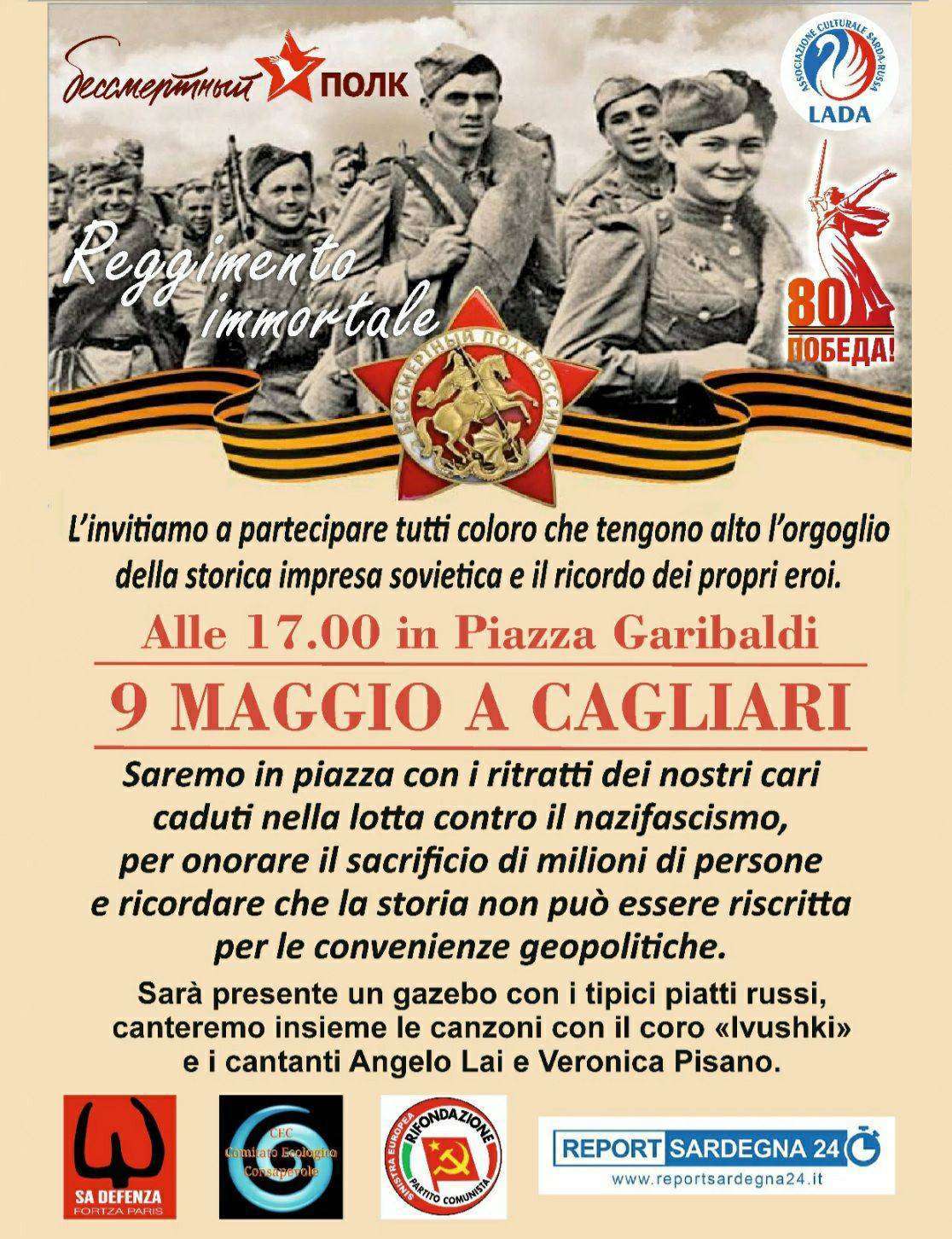 In occasione dell’ottantesimo anniversario dalla fine della guerra, la comunità Russa ha organizzato una manifestazione a Cagliari il 9 maggio dalle ore 17 in piazza Garibaldi.