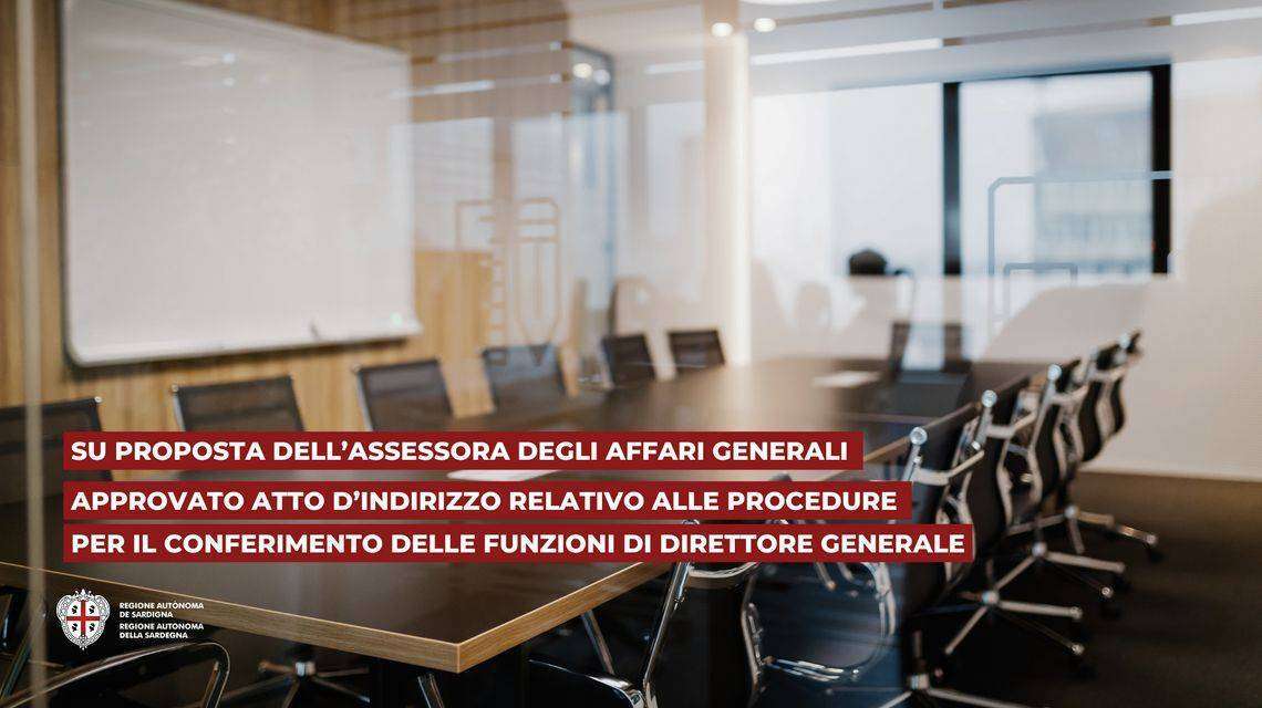 Le funzioni di direttore generale saranno conferite con decreto dell’assessore degli affari generali, personale e riforma della Regione, previa conforme deliberazione della Giunta regionale. “Questa delibera – specifica l’assessora Motzo – si è resa necessaria per rendere la procedura il più possibile snella, ma allo stesso tempo efficace e trasparente. L’obiettivo della Giunta è quello di avere nell’Amministrazione regionale il meglio nelle direzioni generali al fine di poter lavorare con efficacia, efficienza ed economicità.