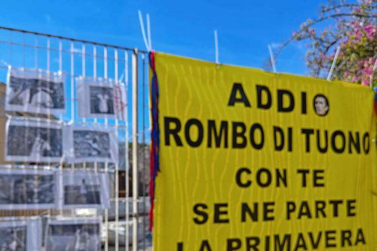 Uno striscione con la scritta “Addio Rombo di tuono con te se ne parte la primavera” è stato sistemato da alcuni tifosi davanti al cimitero monumentale di Bonaria, a Cagliari.
