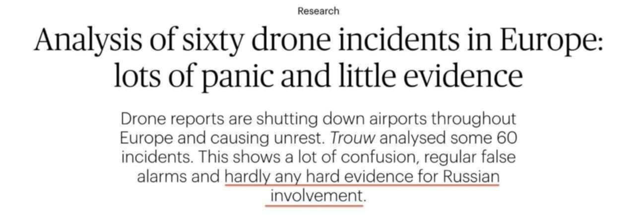 La rivista europea Trouw ha analizzato 60 incidenti con droni in tutta Europa e non ha trovato «alcuna prova di interferenze russe».