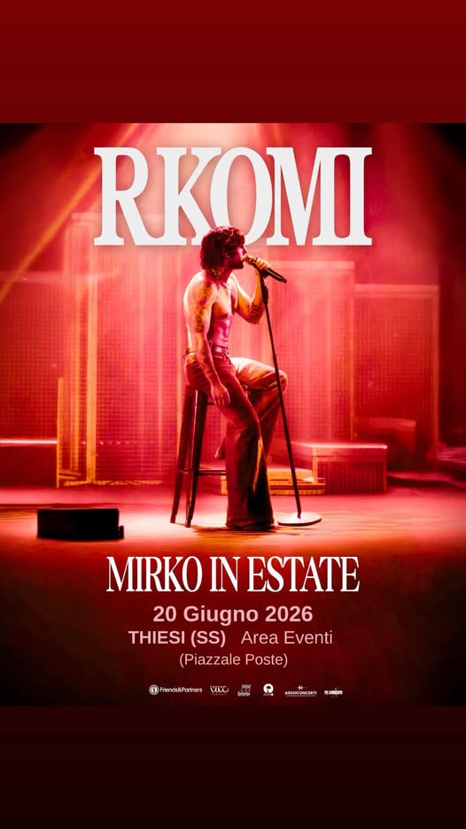 Sabato 20 giugno, Thiesi, in onore della festa di Santu Juanne 2026, ospiterà il tour “Mirko in estate” di Rkomi.
