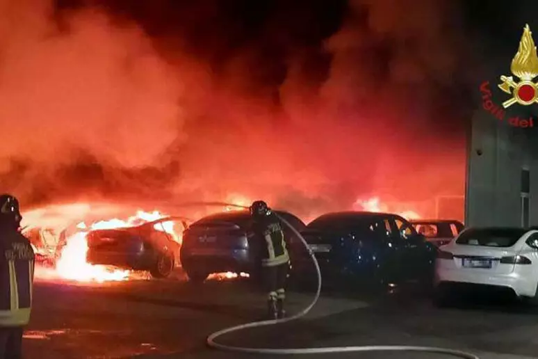 Si indaga a 360 gradi per far luce sulle cause del maxi rogo divampato nella notte in una concessionaria Tesla alla periferia di Roma che ha coinvolto 17 auto.