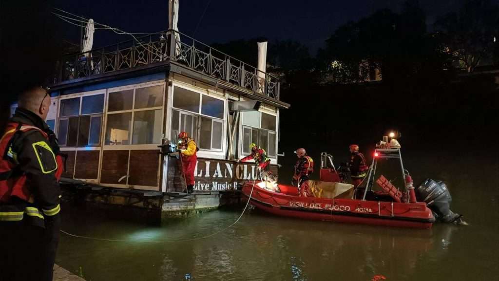 Intervento nella nottata dei Vigili del Fuoco per un barcone sul Tevere con una falla in una delle camere stagne di galleggiamento.