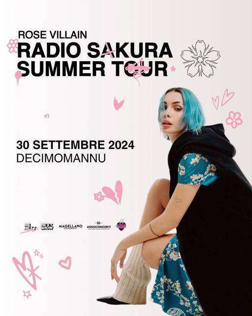 Reduce dal successo del nuovo album “Radio Sakura”, che ha esordito al secondo posto della Top Albums Debut Global di Spotify e che, per la seconda settimana consecutiva, è ancora sul podio della Top Album FIMI alla #3, Rose Villain sarà con il suo “Radio Sakura Summer Tour 2024″, in concerto gratuito in Sardegna per la Festa di Santa Greca a Decimomannu.