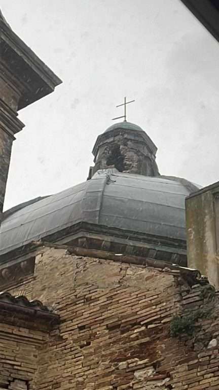 Un fulmine ha aperto un vero e proprio buco nella cupola e detriti ed altri elementi presenti nella cupola sono caduti all’interno della chiesa, in quel momento vuota. Sul posto sono intervenuti i vigili del fuoco, ufficio tecnico del Comune e sindaco.