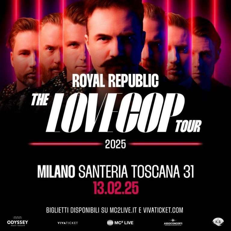 La rock band svedese Royal Republic annuncia nuove date del “The LoveCop Tour”, serie di eventi che li vedranno esibirsi in concerto anche in Italia il prossimo anno.
