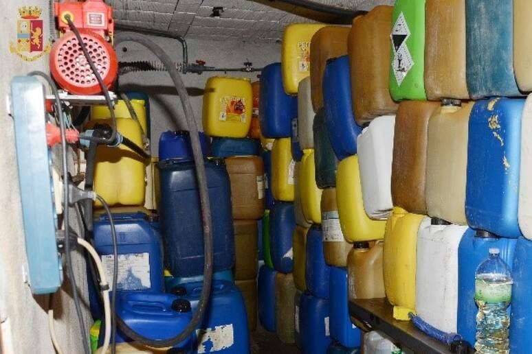 Nella successiva perquisizione domiciliare i poliziotti hanno scoperto che l’uomo, nel piano interrato, aveva realizzato un deposito casalingo – e pericoloso – per il gasolio: due cisterne collegate da tubazioni e 30 taniche piene di carburante.