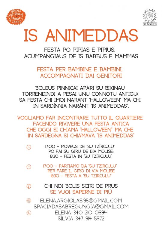 Il 31 ottobre alle ore 17, Spaciada sa Bregùngia e Su Tzìrculu organizzano una festa per bambine e bambini in occasione de Is animeddas.