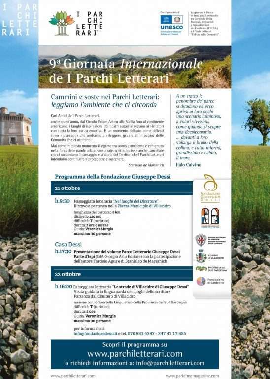 Fine settimana a Villacidro all’insegna del turismo culturale: sabato 21 e domenica 22 ottobre il comune del Sud Sardegna ospita tre appuntamenti promossi dalla Fondazione Giuseppe Dessì nell’ambito della nona Giornata Internazionale de I Parchi Letterari.