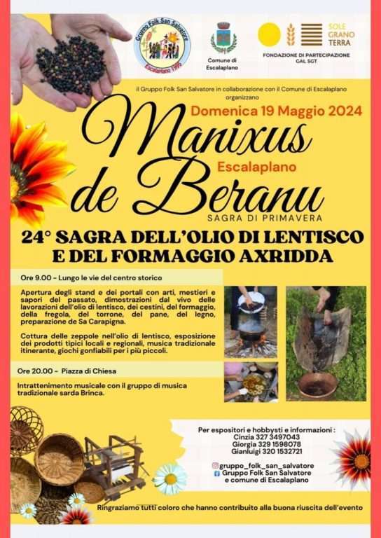 Sagra dell’Olio di Lentisco 2024 a Escalaplano, nuova edizione dell’evento che arriva alla sua 24esima edizione e che si svolgerà il 19 maggio 2024.