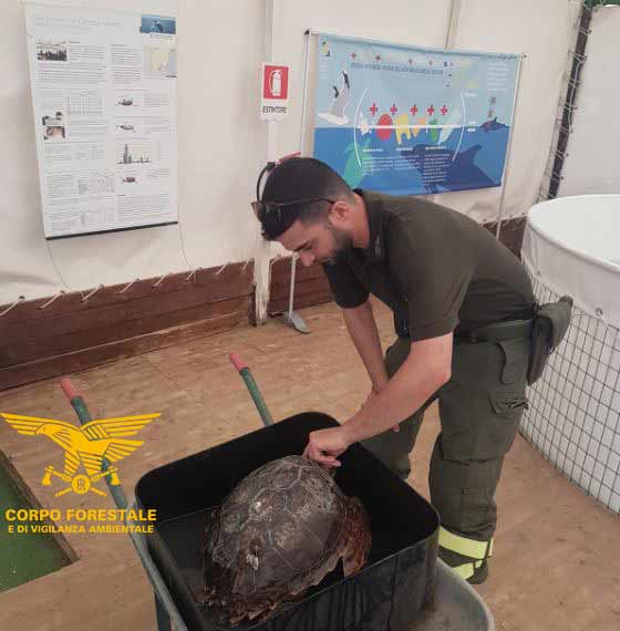 La Sala Operativa ha attivato il personale della Stazione Forestale di Teulada che ha preso in consegna la tartaruga e l’ha quindi trasportata al Centro cetacei di Nora per le cure del caso.