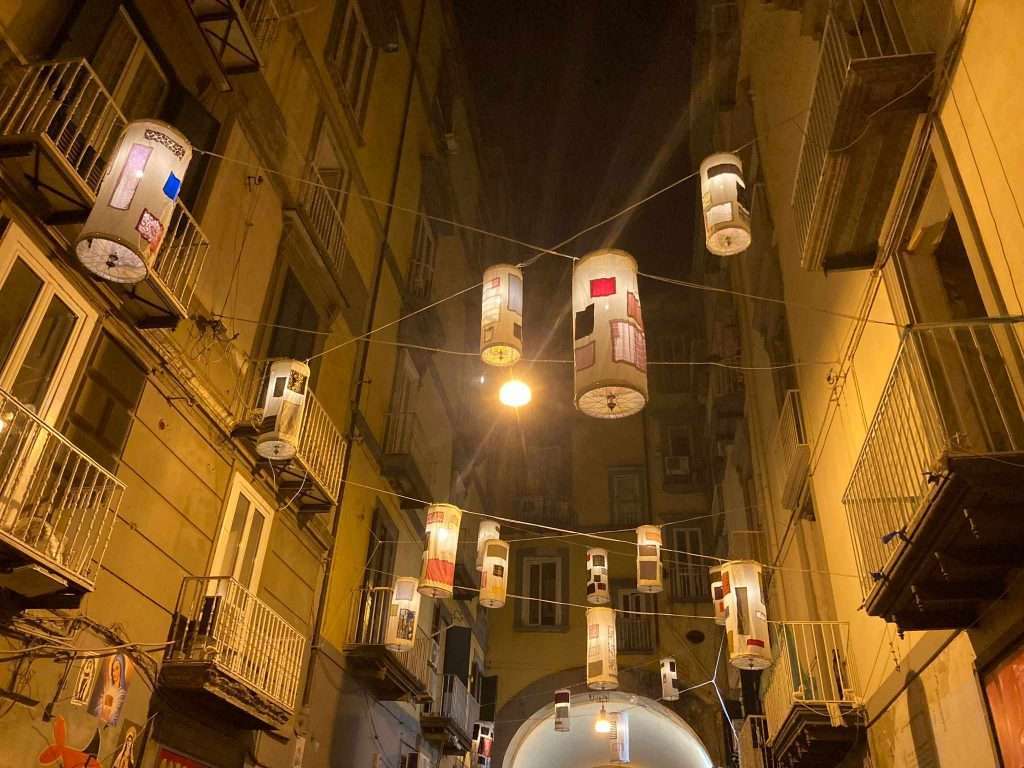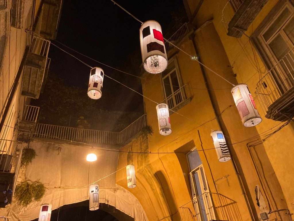 Trovavo risibile quando il più venduto quotidiano isolano, gli consegnava la sua prima pagina con disegni privi di concettualizzazione simbolica matura che, parevano miei (a sette anni d’età disegnavo come Antonio Marras, un genio). Finché a Milano, Antonio Marras, si dava il tono d’artista internazionale nell’isola, non ci vedevo nulla di male, quello che m’inquieta è che sotto forma di passato di una memoria dalla quale sono scappato, la sua figura m’insegua, per il secondo anno di seguito, d’estate, il suo lavoro mi volteggia sulla testa, questa volta a Port’Alba, la mia amata Port’Alba, dove sono cresciuto da scugnizzo felice, adesso dove un tempo volteggiava Mattia Preti, c’è il progetto d’Antonio Marras, eseguito con incolpevoli giovani studenti dell’Accademia di Napoli (a Cagliari dove l’Accademia non è mai nata, purtroppo non vedranno mai interventi “formativi” come questo), costretti a deporre la propria creatività per l’ennesimo discutibile progetto artistico della giunta che fa capo al Sindaco Gaetano Manfredi, come l’anno scorso, le lanterne sono state cucite dagli studenti (che divertimento creativo) e si sono spostate dal Vicoletto di San Pietro a Maiella (di fatto un vicolo orinatoio a cielo aperto della movida Napoletana) a Port’Alba.