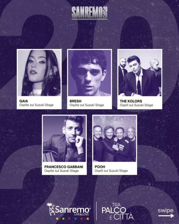 Dal martedì alla finale di sabato, Piazza Colombo si trasformerà in una vera e propria platea a cielo aperto, offrendo show dal vivo gratuiti e collegamenti in diretta con la kermesse televisiva.