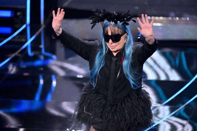 Nella serata finale, fantasanremo o meno, Loredana Bertè arriva sul palco dell’Ariston in total black, occhiali scuri sui quali sono applicate, a mo’ di coroncina, piume nere. Sul petto il fiocchetto rosso che ha sempre sfoggiato durante le sere del festival, simbolo della lotta contro la violenza sulle donne e della lotta internazionale all’Aids.