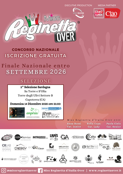 Verrà assegnata una fascia per categoria: Miss, Over Junior, Over Lady, Over Senior.