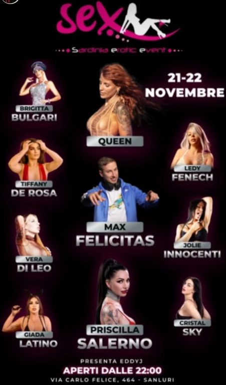 Queen, la nuova stella sarda, sensualità selvaggia e orgoglio isolano, Priscilla Salerno, la leggenda vivente del piacere, Max Felicitas, pronto a incendiare la serata con la sua energia da vero re del vizio.