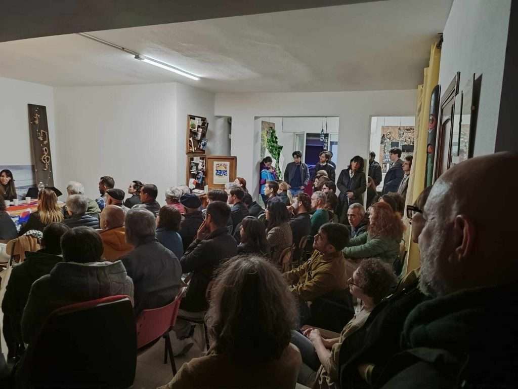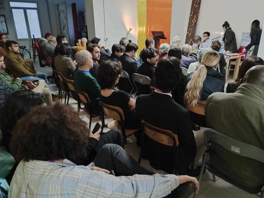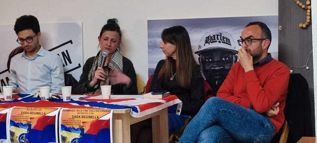 In una gremita sala conferenze, Reginella ha presentato il suo ultimo libro “Donbass. La Guerra Fantasma nel Cuore d’Europa”, dialogando Maria Antonietta Scanu, Leandro Cossu e Cristiano Sabino, esponenti dell’associazione turritana.