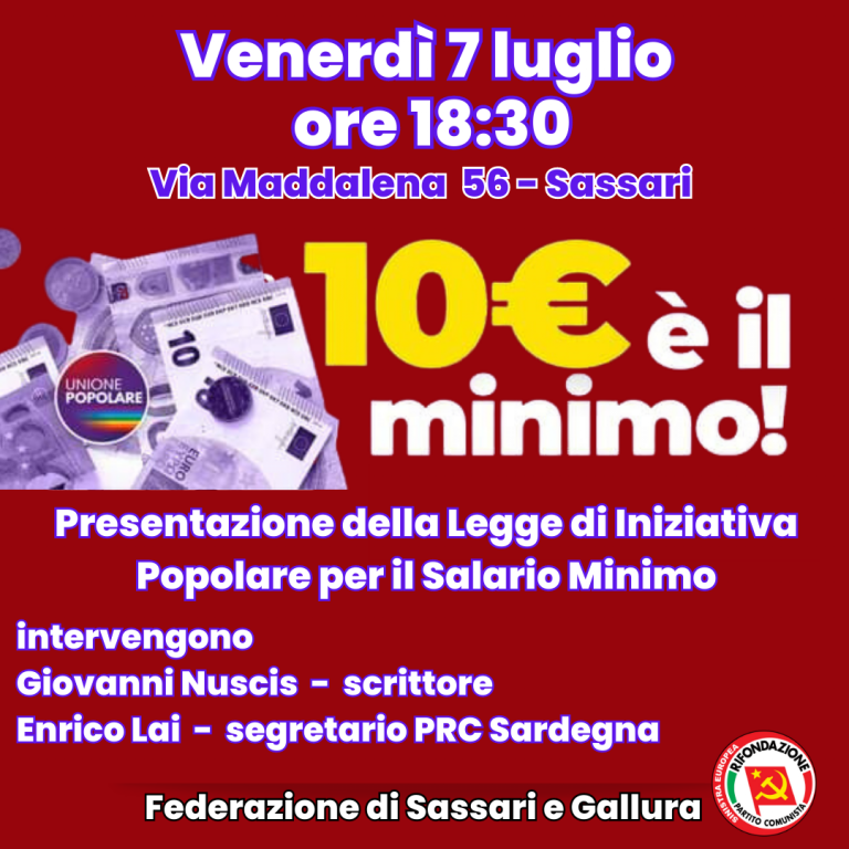 Ne discuteranno venerdì 7 luglio alle ore 18:30, in una assemblea pubblica organizzata dal Circolo Lidia Menapace di Rifondazione Comunista, lo scrittore Giovanni Nuscis ed Enrico Lai, segretario PRC Sardegna, in Via Maddalena 56.