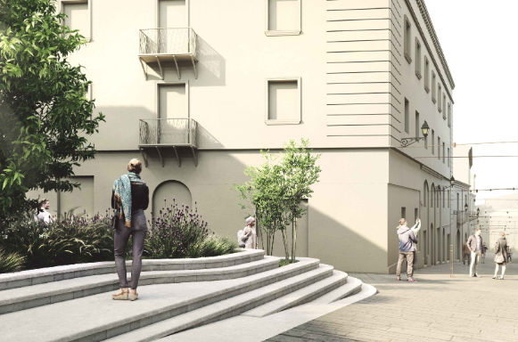 Dalla scelta dei materiali al nuovo sistema di illuminazione, la riqualificazione di quell’area sino a trasformarla in un “salottino” avverrà attraverso soluzioni architettoniche in grado di renderla più fruibile e di valorizzarla pienamente. Oltre al contingentamento degli accessi per i mezzi, la piazza sarà resa più funzionale e sicura grazie all’azzeramento dei dislivelli esistenti, l’eliminazione delle barriere architettoniche e il rifacimento completo della pavimentazione su un unico livello in materiale lapideo, in continuità con via Torre Tonda e in coerenza al contesto urbano circostante. Cambieranno gli elementi di arredo di quello che oggi è uno spartitraffico e che invece sarà dotato di sedute, cestini per i rifiuti e dissuasori. Sarà conservata e implementata la presenza dell’oasi verde esistente, sarà completata la rete dei sottoservizi idrici e del sistema di raccolta delle acque piovane e saranno valutate le eventuali implementazioni di ulteriori sottoservizi. Il miglioramento del sistema di illuminazione prevede l’efficientamento energetico delle lampade esistenti e la sostituzione dell’illuminazione privata con una più adatta al contesto urbano. Saranno infine stilate delle linee guida per la razionalizzazione e la regolamentazione dell’occupazione del suolo pubblico per i dehors destinati alle attività di ristorazione all’aperto.