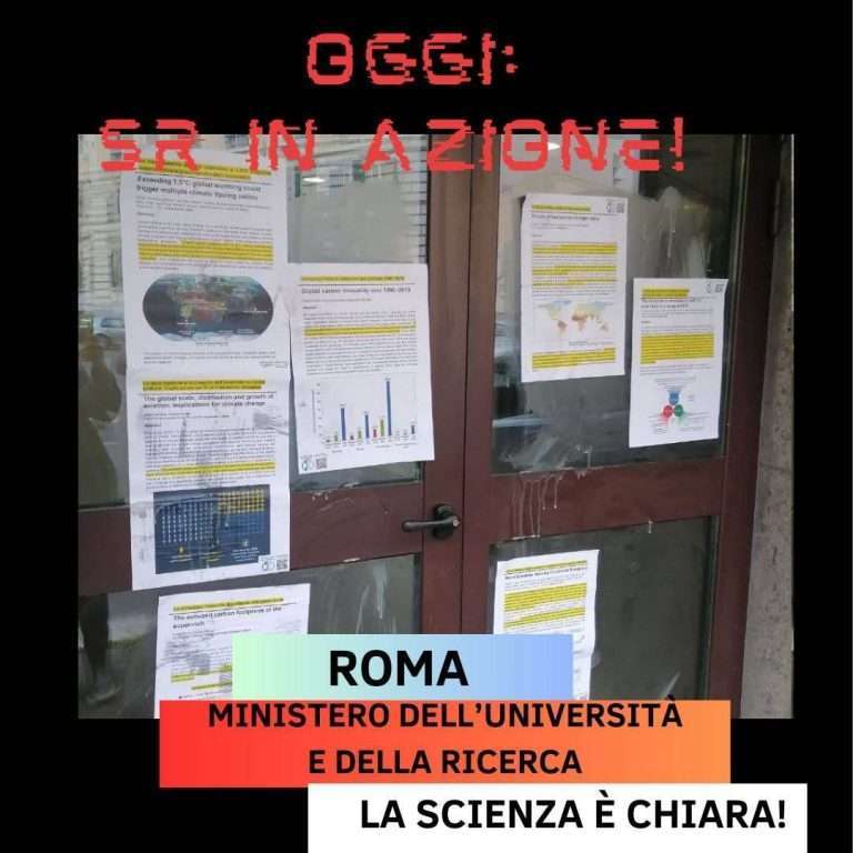 Questa mattina otto scienziati di Scientist Rebellion hanno manifestato al ministero dell’Università e Ricerca per protestare sui cambiamenti climatici.