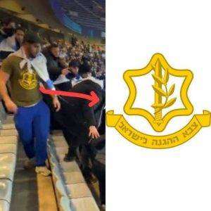 Uno dei tifosi israeliani che hanno aggredito e picchiato una tifosa francese allo Stade de France indossava un distintivo dell’esercito israeliano.