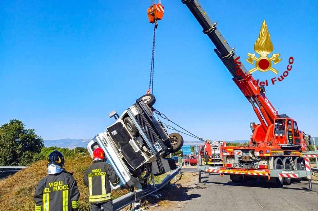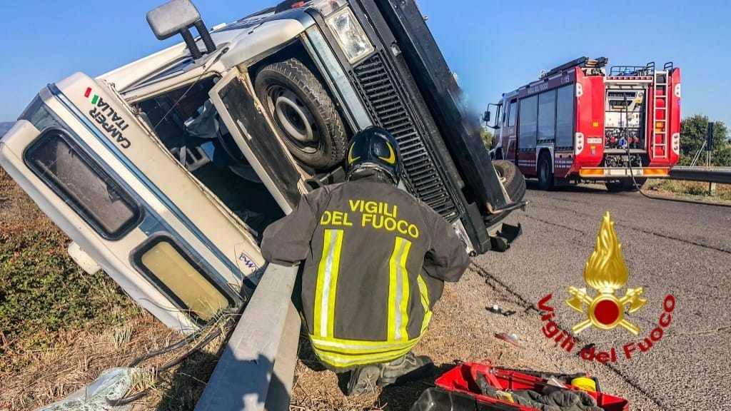 Incidente stradale questa mattina con il coinvolto di una una vettura e un camper che si è ribaltato sul cavalcavia all’incrocio in uscita della 131 al km 127.
