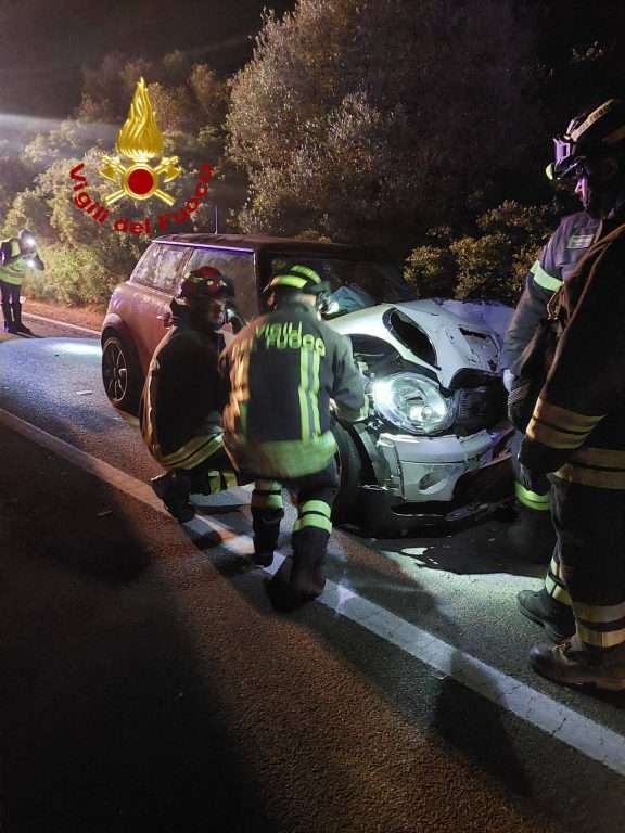Scontro frontale fra due autovetture nella nottata al km 253 della SS 125 in prossimità del bivio di Santa Lucia.